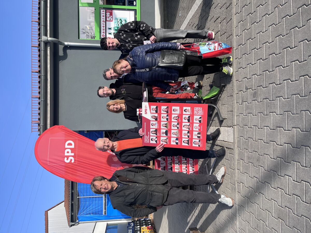 Einen herzlichen Empfang erlebten unsere Kandidatinnen und Kandidaten heute beim Infostand vor dem Getränkemarkt Sobi. Sogar der Platz für unseren Stand war abgesperrt worden, sodass wir die Kundinnen und Kunden der umliegenden Geschäfte gut erreichen konnten. Ein besonderer Dank gilt Herrn Auras, der einiges dafür getan hat, damit wir uns vor Ort willkommen fühlen.